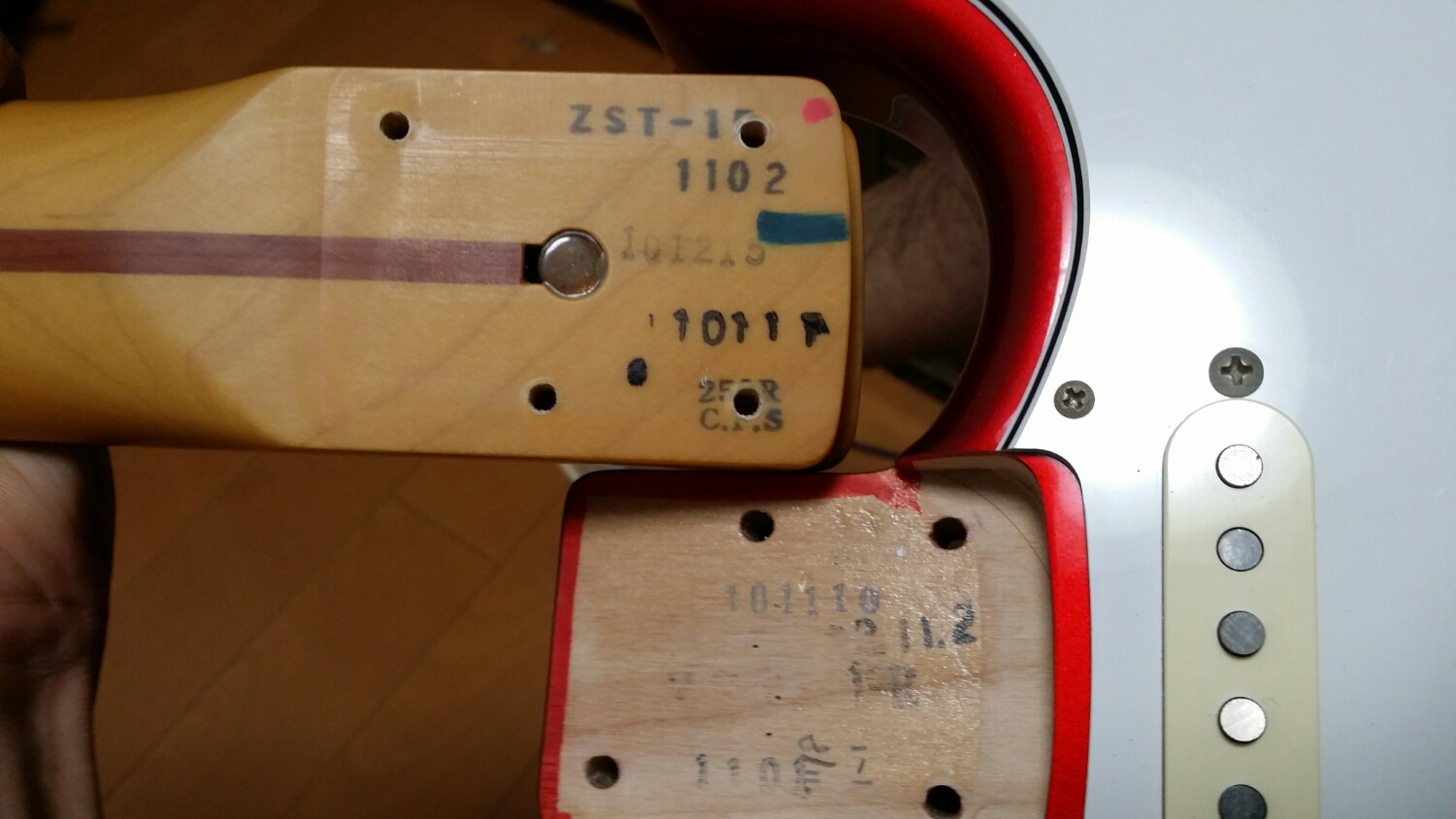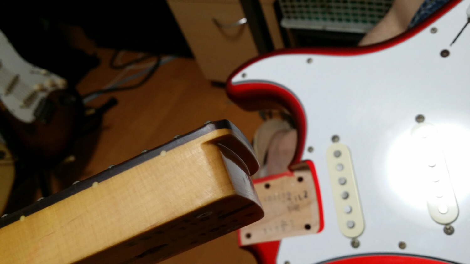 ただ、これで指板延長部分も削らなくていいし、ネジ穴位置も心配ないはず。
