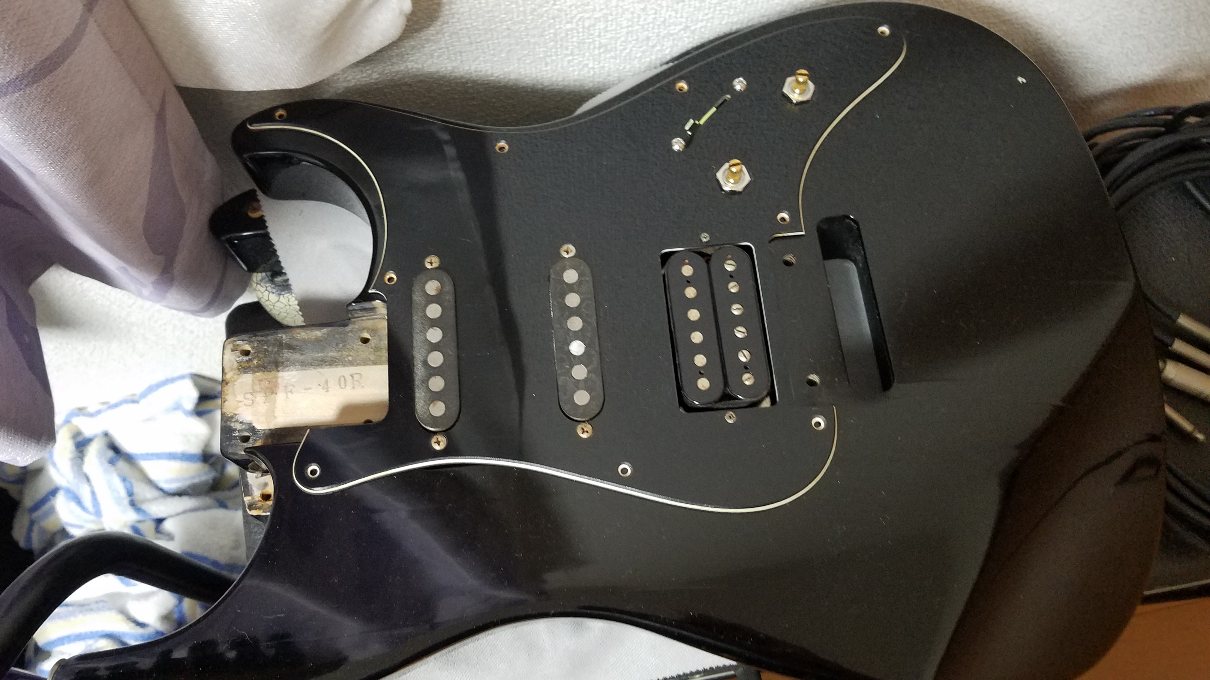 聞くと完全セルフコンポーネントらしい。メルカリやヤフオクなんかでよく売ってるボディとネックを手に入れて、パーツを揃えて個人で組んだギターをバラしたものだった。中古楽器も扱う店なので、そんな絡みで入ってきたんだろう。