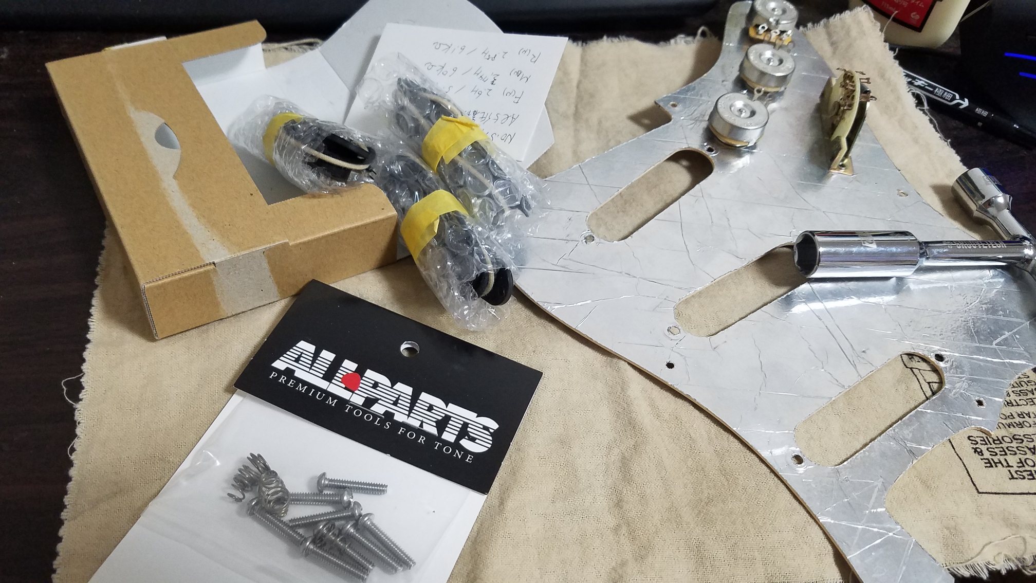 塗装済みアルダーボディと、ローステッドメイプルネック。パーツ売りでひっそり片隅にあったんだ。