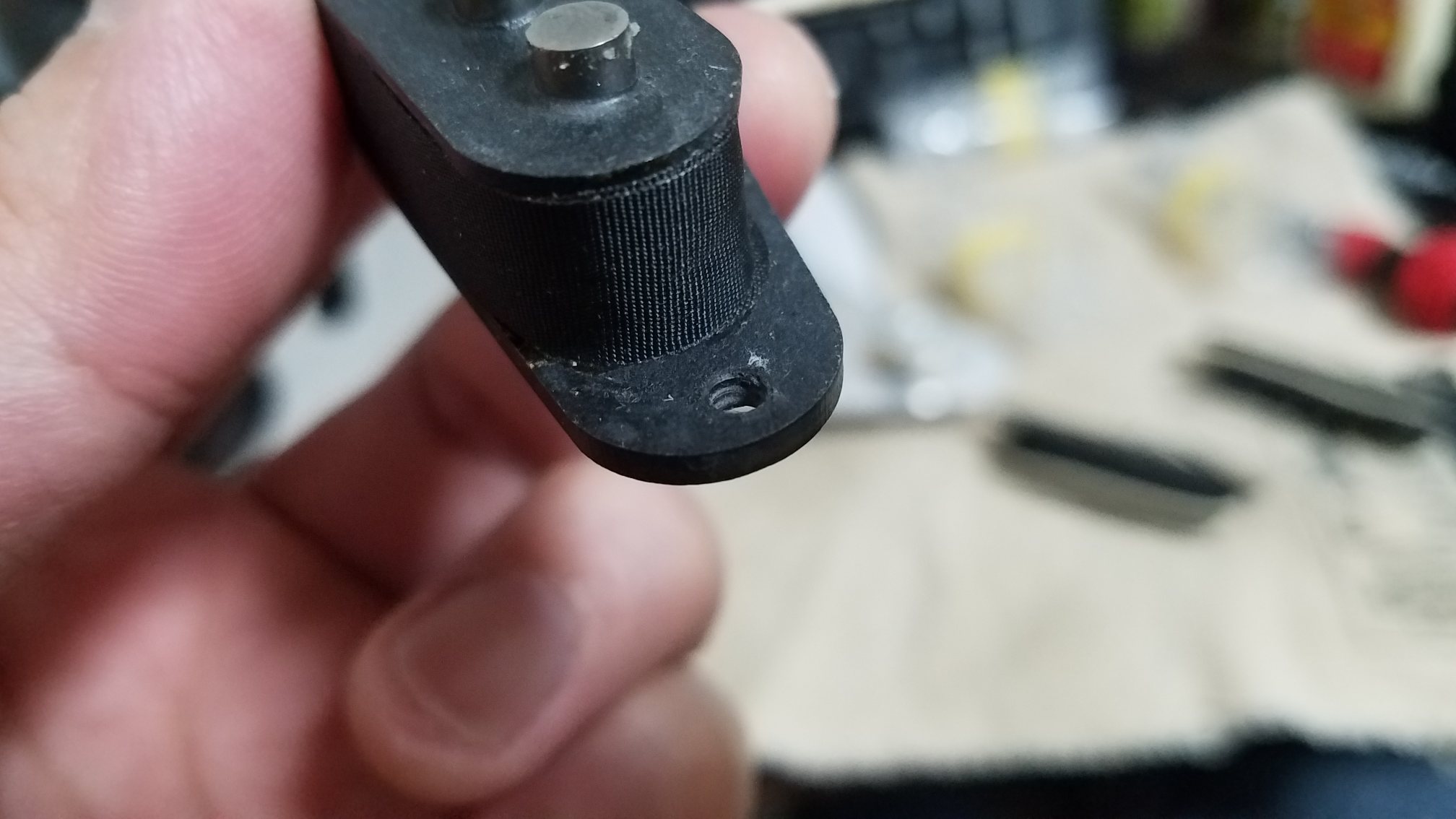 アンカーレス・スタッド故に広がってしまったか、と考えたが、いや違う。それならヘッド方向にのみ広がるはず。中を覗くとネジ山も潰れてるし、これ、出品者が一度、本来のものとは違うスタッドを無理やり入れ込んだんじゃないか?
