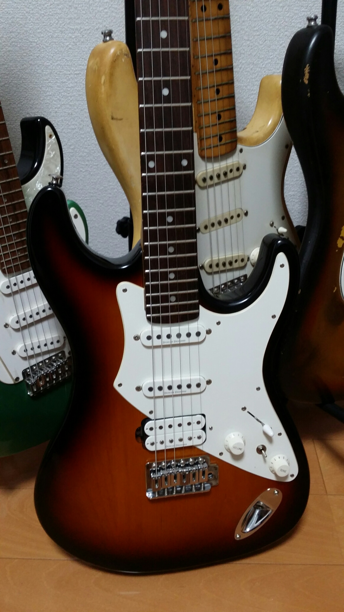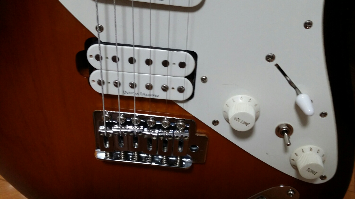 ピックアップは3つともDuncan Designed。